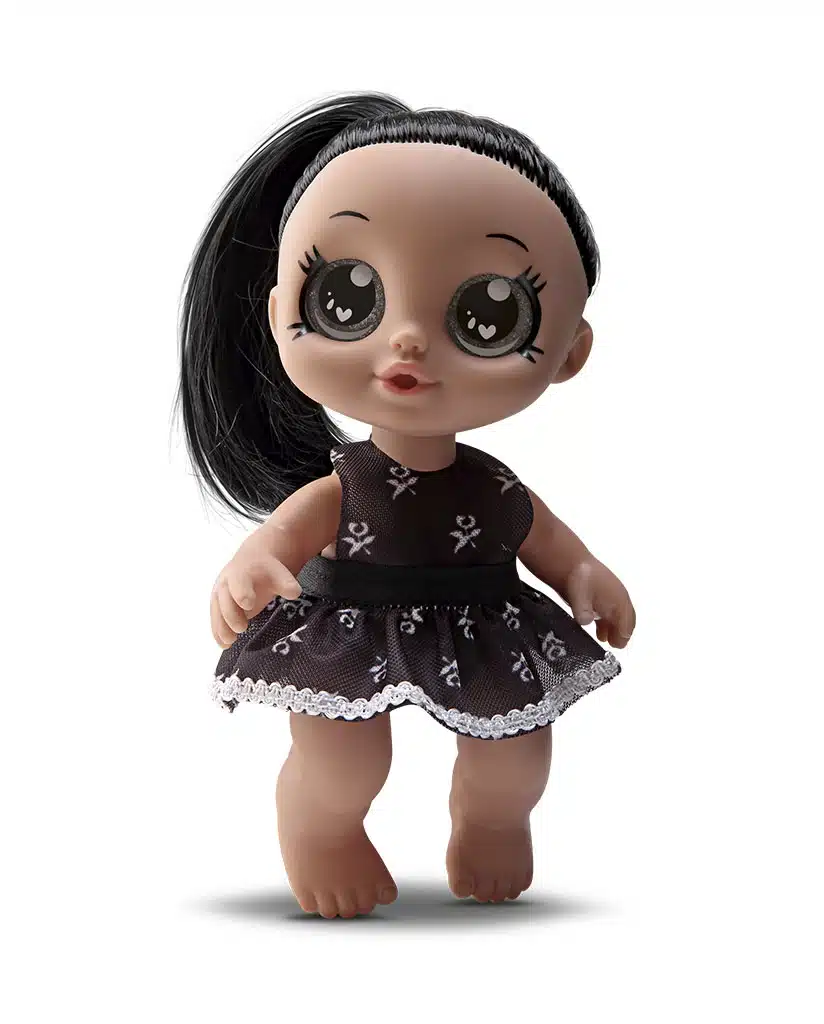 Uma bonequinha bem diferente, com seu jeito sombrio que a torna tão envolvente. Rainbowzinha, a princesinha macabra que encanta a todos com seu charme peculiar! Vem com pente, espelho e escova, para você fazer lindos penteados!